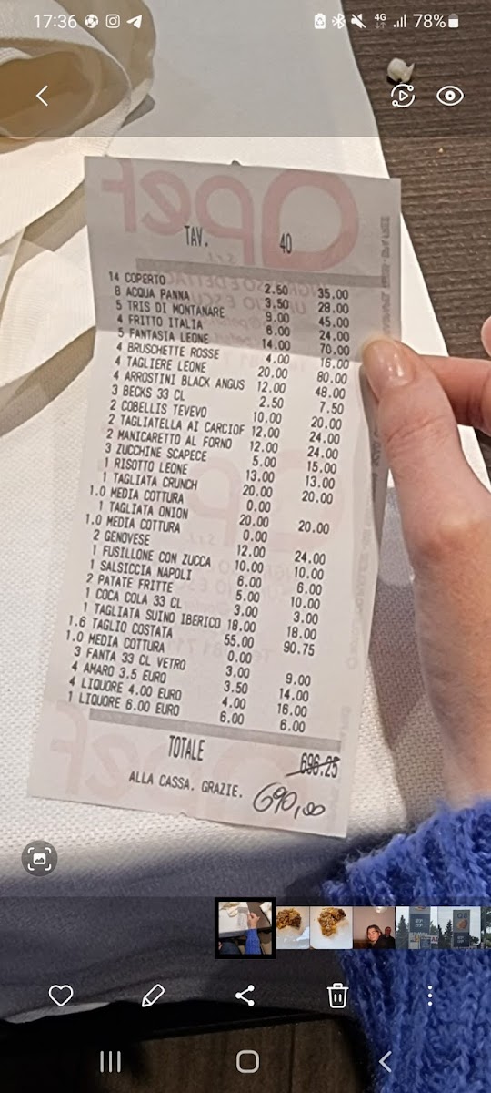 “ Desde el atendimento hasta la comida y el ambiente! Perfecto todo, el precio muy justo, la calidad del producto indiscutible, nos encantó mucho, pedimos una berenjena que seguramente la mejor que he comido!, un entrecot argentino, pizza bufalina y postre, 55€ todo para dos personas, la próxima vez que volvamos a Italia pasaremos por aquí ”
